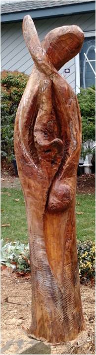 This is the tree trunk of a beautiful large weeping cherry tree in my yard that died suddenly. As I removed the dead branches, I could see the emerging narrative of two figures sharing a common body. I would still prefer the live tree I had before, but at least its beauty was transformed into another pleasing form.